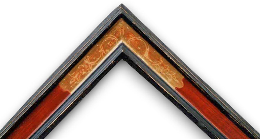 Cartouche florentin or rouge vif filets noirs