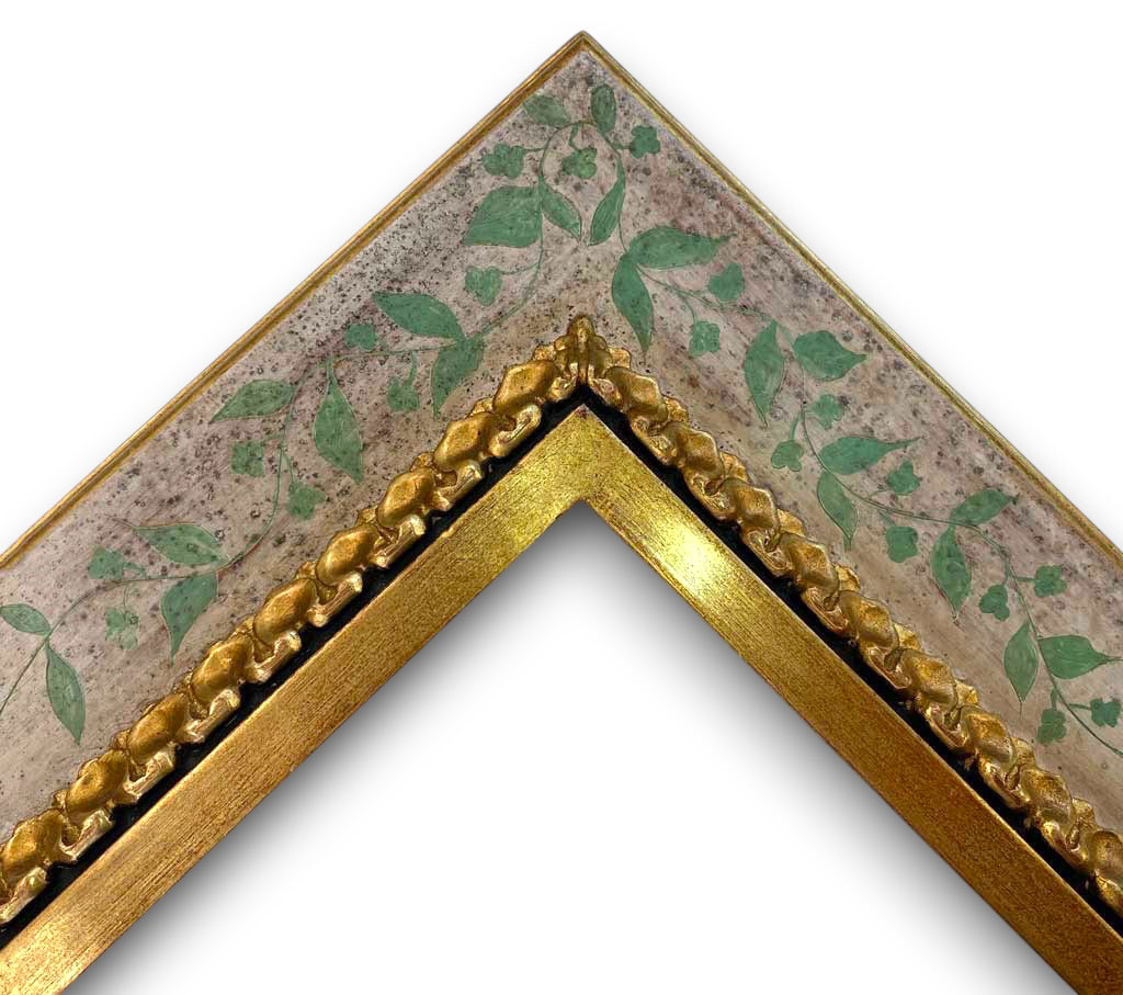 Sculpté raie de coeurs plat vieux blanc guirlande verte